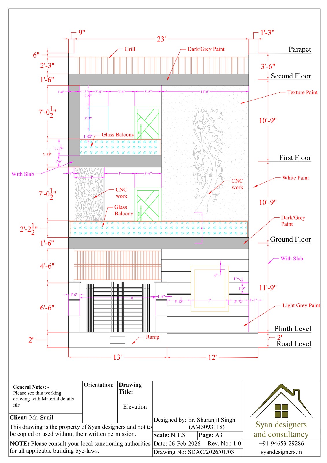 Syan Designers and Consultancy is a leading architect in Ludhiana offering Expert Residential Architecture, Home design, Elevation and Interior design services. Get creative, modern, and functional design solutions for your dream home.